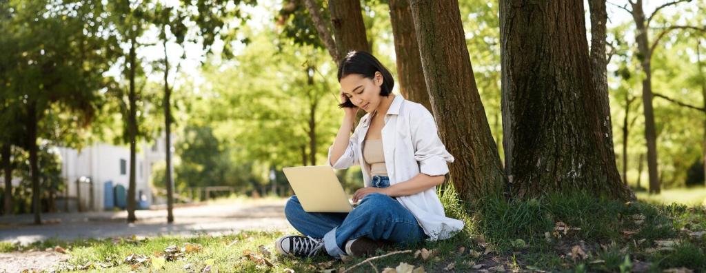 Mara, Informatiklehrerin in Köln, stellte Aufzeichnungen statt Dauerstreaming bereit und senkte die Videobitrate. Ihre Klasse merkte kaum Qualitätsverlust, doch die Serverauslastung sank deutlich. Teile deine Erfahrungen, damit wir gemeinsam wirksame Green-Learning‑Gewohnheiten verbreiten.